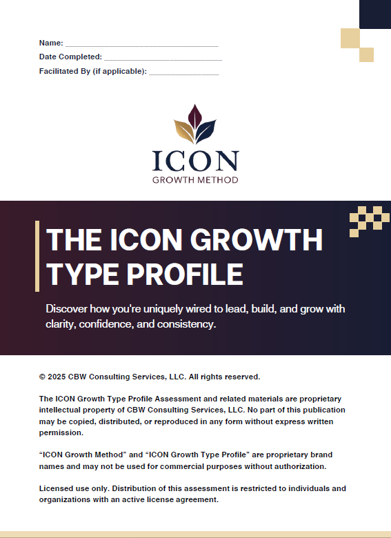 Through the ICON Growth Type Profile, Candace helps you discover your unique growth rhythm — as a Visionary, Builder, Strategist, or Connector — and create a clear path toward destiny alignment and fulfillment.